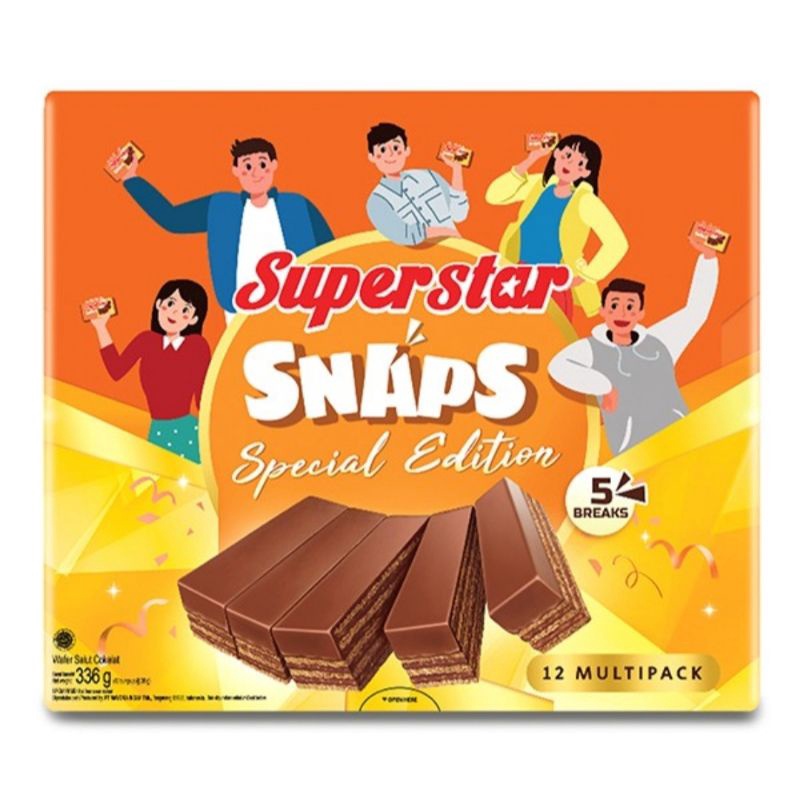 superstar Snaps 28 gr x 12pcs merupakan salah satu varian wafer stick dari Mayora yang dibuat dengan memadukan resep rahasia original dari ahli pembuat cokelat dan bahan-bahan pilihan berkualitas untuk menghasilkan wafer stick renyah yang memiliki kemurniaan, kelembutan, dan kesempurnaan rasa. Wafer stick ini terdiri dari kombinasi wafer krispi, krim cokelat premium yang nikmat, dan susu lezat di setiap gigitannya, memberikan sensasi menikmati coklat premium yang tak terlupakan. Diproduksi dengan teknologi modern dengan bahan-bahan berkualitas sehingga menghasilkan wafer stick sebagai camilan yang pas dan bermutu baik dan halal
