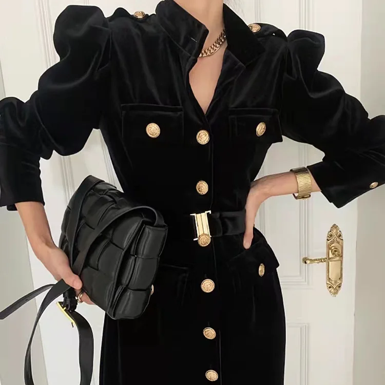 SuperAen 2021 осеннее Новое модное прямое однотонное Повседневное платье до середины икры с рукавами-фонариками и высоким воротником для женщин