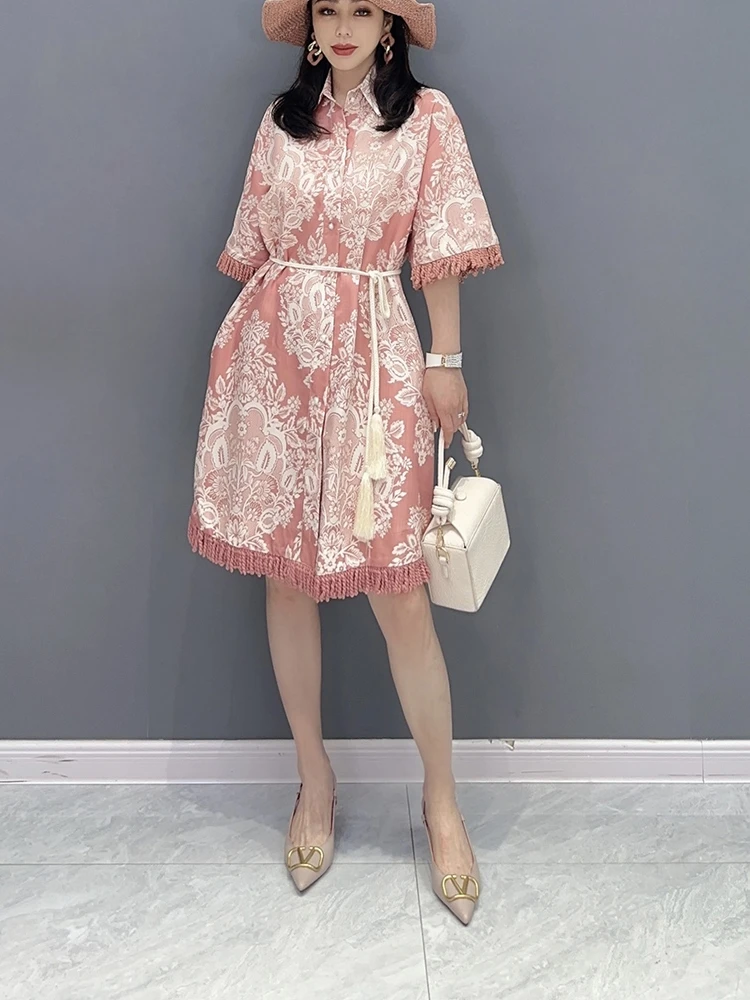 SuperAen 2023 летнее Новое корейское тонкое платье с воротником с отворотом Универсальный женский кардиган платье-рубашка с принтом