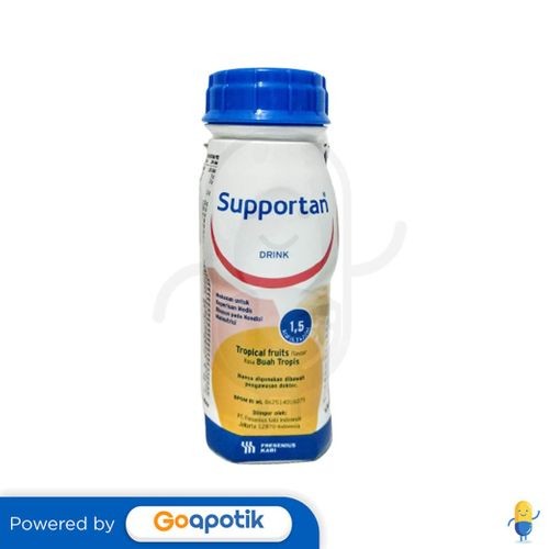 Deskripsi: Supportan merupakan makananan cair yang mengandung karbohidrat, lemak, protein, vitamin, mineral, EPA yang berfungsi untuk memberikan nutrisi tambahan bagi pasien yang membutuhkan | Komposisi: Mengandung karbohidrat, lemak, protein, vitamin, mineral, EPA | Dosis: Diberikan sesuai dengan rekomendasi dokter | Indikasi: Untuk memberikan nutrisi tambahan pada pasien yang membutuhkan, terutama pasien kanker | Perhatian Khusus: '- | Kemasan: Botol, 200 mL | NIE: ML 862509006856