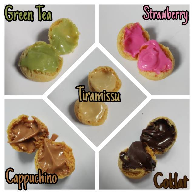 Coklat, strawberry, tiramisu, greentea dan cappuchino.