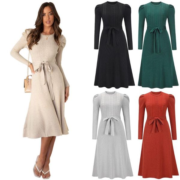 casual dresses 2021 autumn and winter women's long-sleeved knit dress slim lace lacquer long, Black;gray