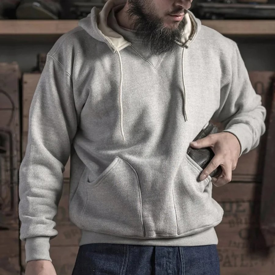 Sweat à Capuche Décontracté à Col Ras Du Cou Avec Poche Rétro Pour Hommes