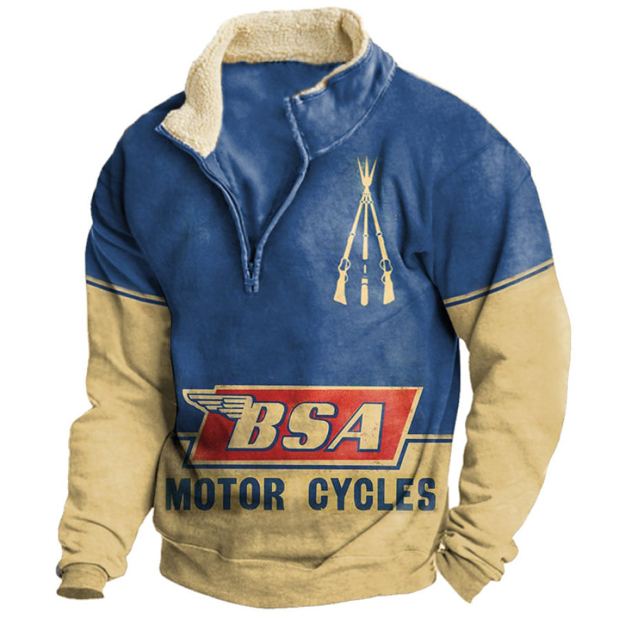 sweats à capuche et sweat-shirts,sweat homme velours col demi ouvert rétro moto racing bsa