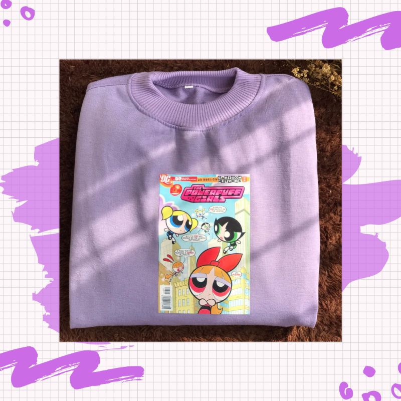 Sweater Lilac Custom Sablon Stiker Besar(Request Apapun)