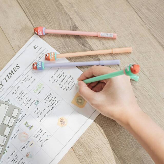 Beruang-beruang lucu ini dengan santainya bertengger di atas penamu selagi kamu menulis, senantiasa membuatmu rajin mencatat. Goresan pena Sweet Bear Pot berwarna hitam, dengan tintanya yang berbasis gel sehingga lebih nyata dan cepat kering. Pilih yang kamu suka dari 4 pilihan warna pastel cerah yang tersedia.