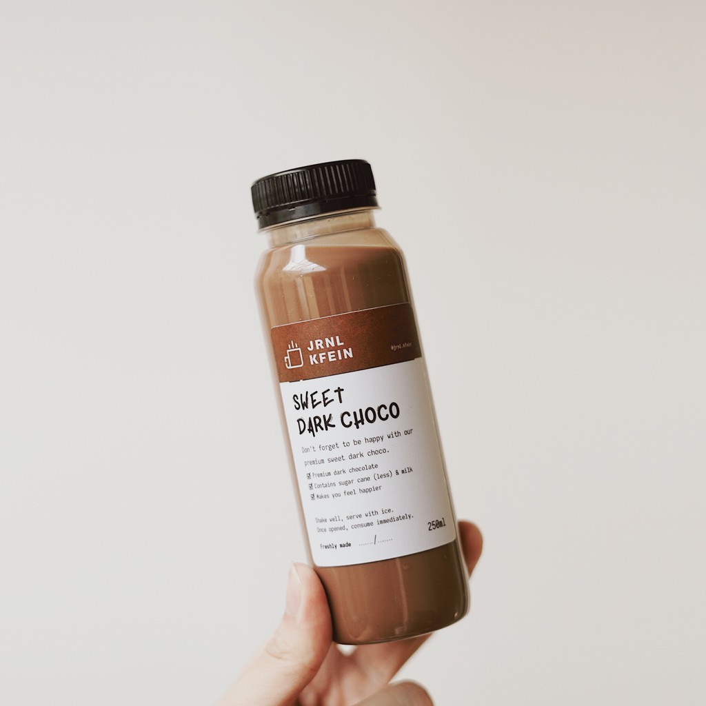 Dark chocolate premium dengan susu segar dan gula. Bisa diminum langsung maupun dengan es biar makin segar!