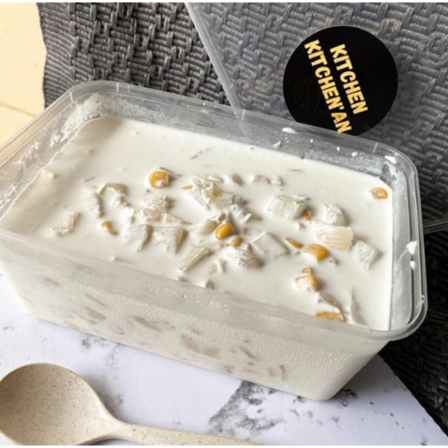 Dessert khas Fillipina Cream Cheese yg melimpah dengan isian Buah Longan , Jagung manis dan Nata de coco