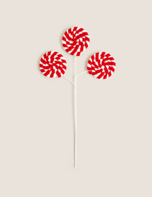 Add a sweet touch to your Christmas decor with this candy-inspired tree pick. The spiral decorations are striped in bold red and white, with three decorations on a single stem.