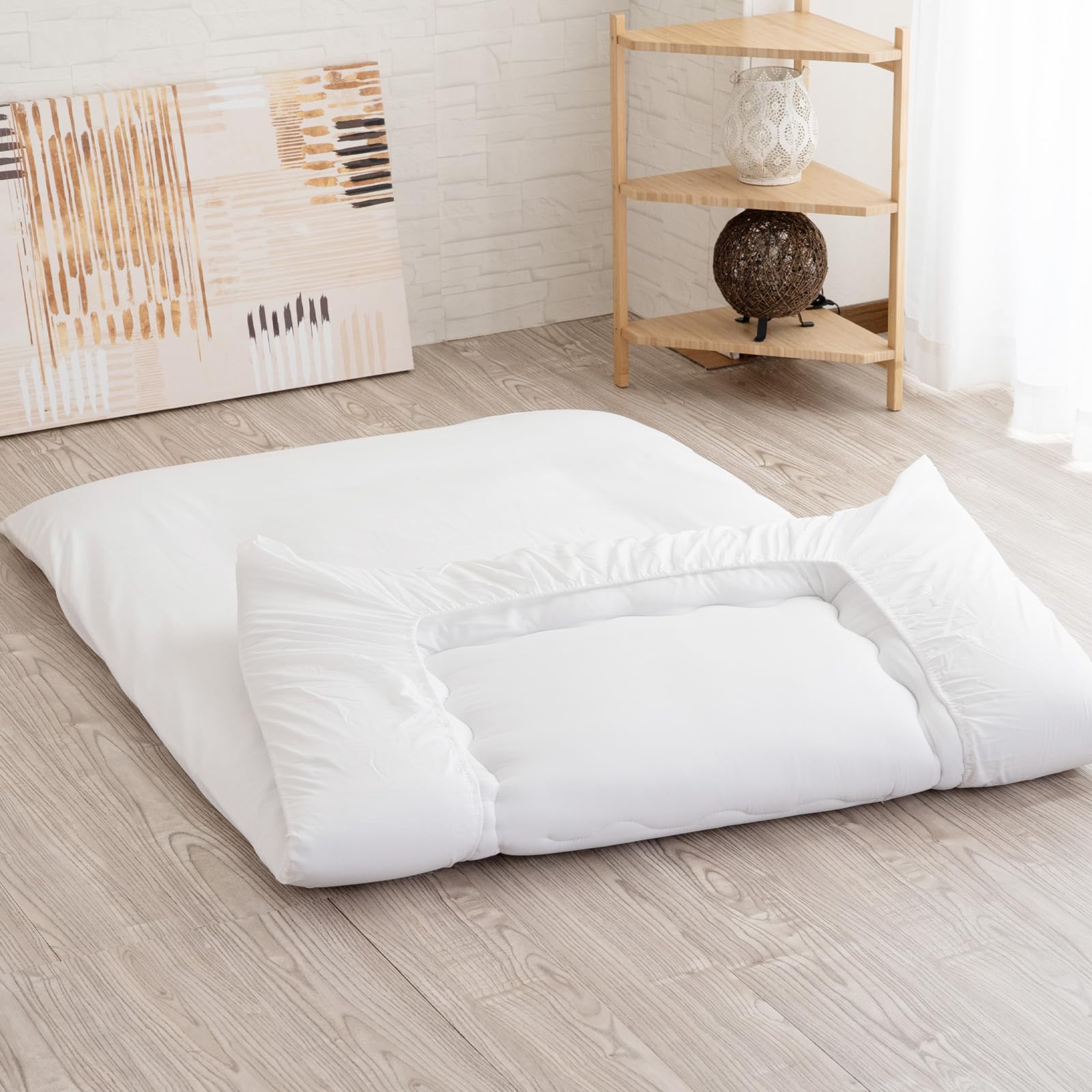Sylphys Кровать 105 x 215 20 см Однотонный полиэстер и простыня на резинке, Односпальная, см, Глубина, Белый, Цвет, Хлопок, Тонкий, Быстросохнущий, Длинный, белый