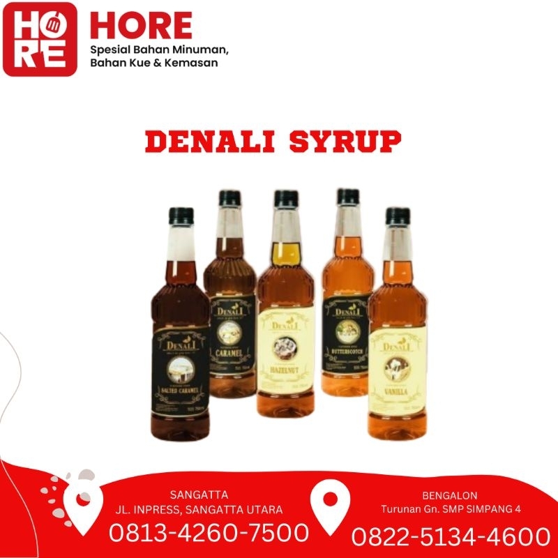 Sirup Denali merupakan sirup premium yang banyak digunakan dalam industri hotel, restoran maupun kafe sebagai sirup gourmet dan sudah sangat familiar dikalangan para Barista. Sirup premium yang di impor langsung dari UK ini dikemas dalam botol ekslusif dengan volume 750ml. Sirup ini sesuai digunakan untuk keperluan pribadi ataupun dalam acara jamuan. Tersedia dalam berbagai varian rasa.