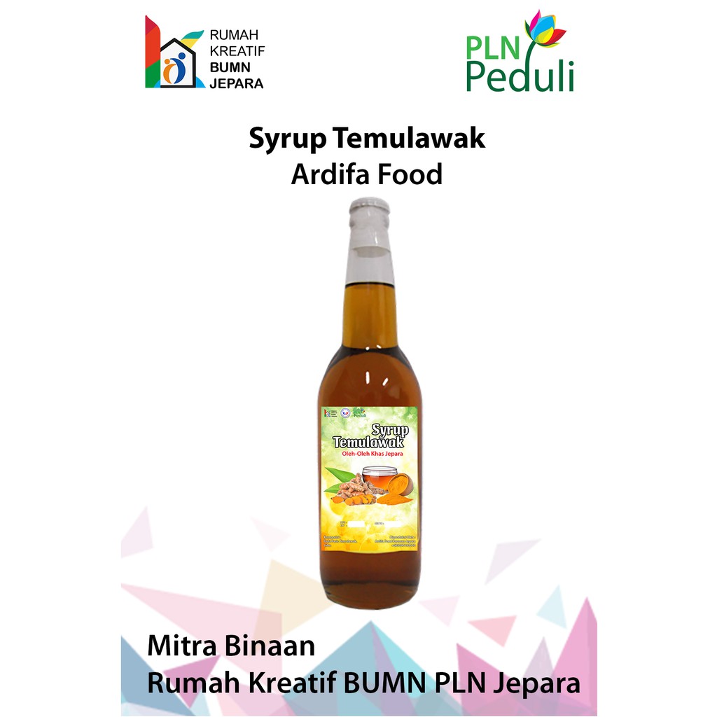 Syrup Temulawak merupakan hasil homemade industri yang di produksi oleh Sadifa Food. Sadifa Food adalah salah satu komunitas difabel yang ada di jepara yang merupakaan mitra binaan Rumah Kreatif BUMN (Persero) Unit Induk Pembakitan Tanjung Jati B . Sirup di EXTRACT dari bahan Temulawak ALAMI DENGAN CAMPURAN REMPAH KHAS NUSANTARA. DIBUAT DARI 100% BAHAN ALAMI, TANPA BAHAN PENGAWET. Saran Penyajian 2-3sdm dicampur gula secukupnya dan air hangat/panas 250ml. bisa ditambahkan susu/jeruk nipis. 1 Botol kemasan 250ml bisa disajikan untuk 20-25 gelas.