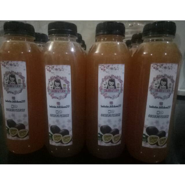 Syrup markisa home made yang di buat dari sari buah markisa dan gula pasir asli tanpa pakai obat pengawet mau pun pewarna makanan, jadi sangat aman banget untuk di komsumsi bagi kita mau pun anak anak, dan syrup markisa ini juga kaya akan vitamin c yang sangat bagus buat kesehatan tubuh loh.