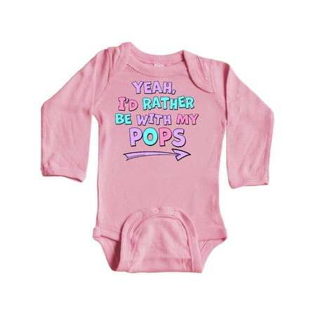 Inktastic Yeah I d Rather be with My Pops in Pink Blue and Purple Gift Baby Boy or Baby Girl Long Sleeve Bodysuit