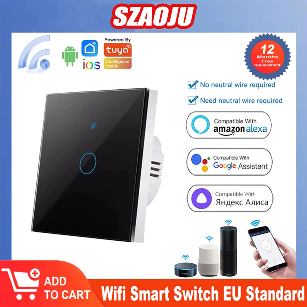 Szaoju Tuya WiFi Wall Touch Switch Smart Light Switch 1/2/3 Gang Glass Panel Button For EU Smart Home Life Alexa Google Home