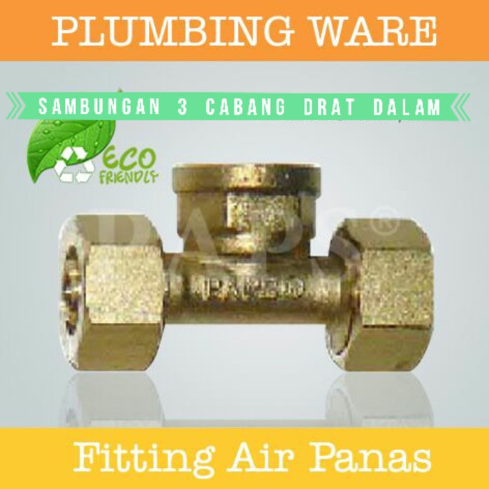 Tee atau sambungan cabang tiga yang terbuat dari bahan kuningan full yang di padatkan terlebih dahulu dan di bentuk sehingga mengurangi resiko terjadinya kebocoran halus pada saat pemakaian. Berfungsi untuk menyambungkan antara pipa dan pipa. Dengan sistem jepit selang dan memiliki seal anti bocor, akan lebih mempermudah proses pemasangan. Ukuran untuk pipa 3/4 Inch dan 1/2 Inch untuk ke kran.