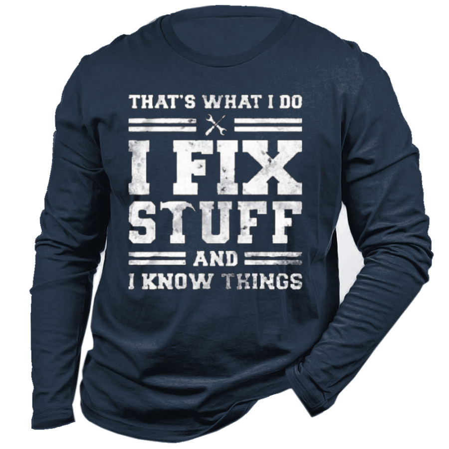 T-shirt A Maniche Lunghe In Cotone Da Uomo I Fix Stuff And I Know Things