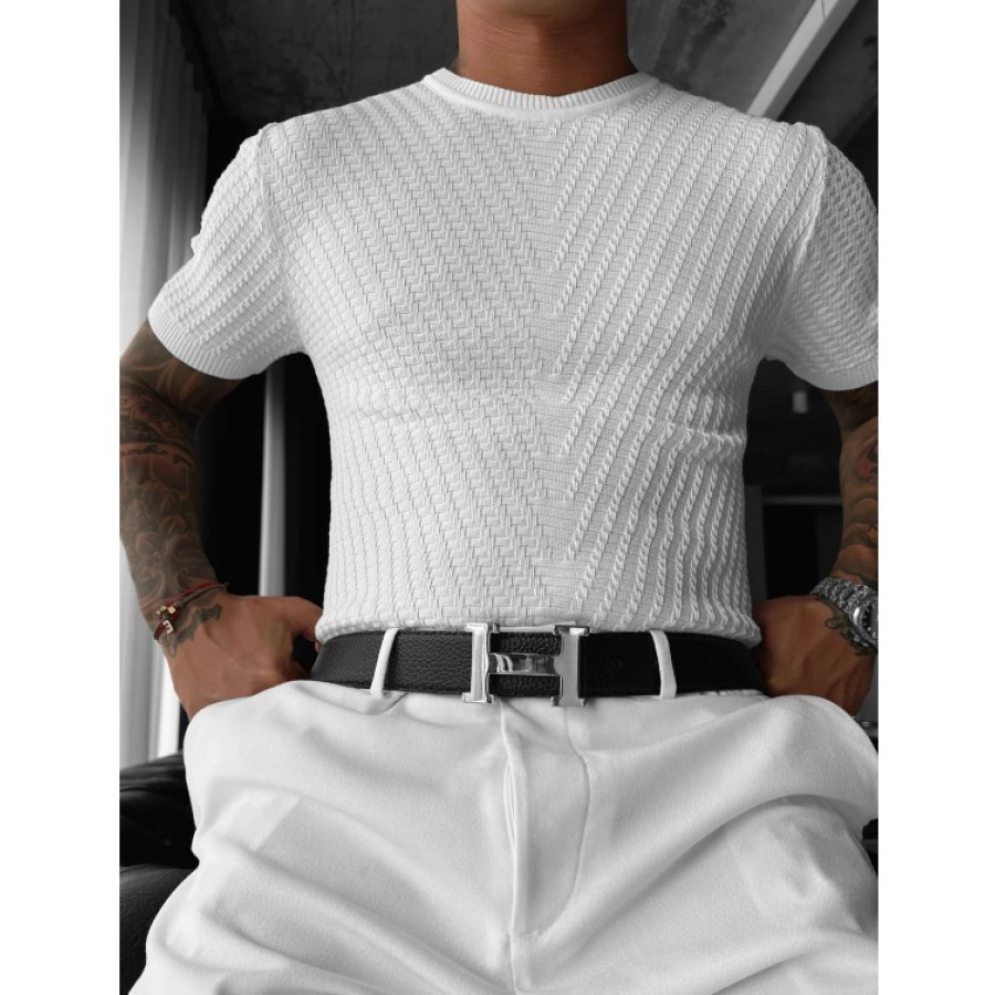 T-shirt Basic Da Uomo In Maglia Sottile Beige