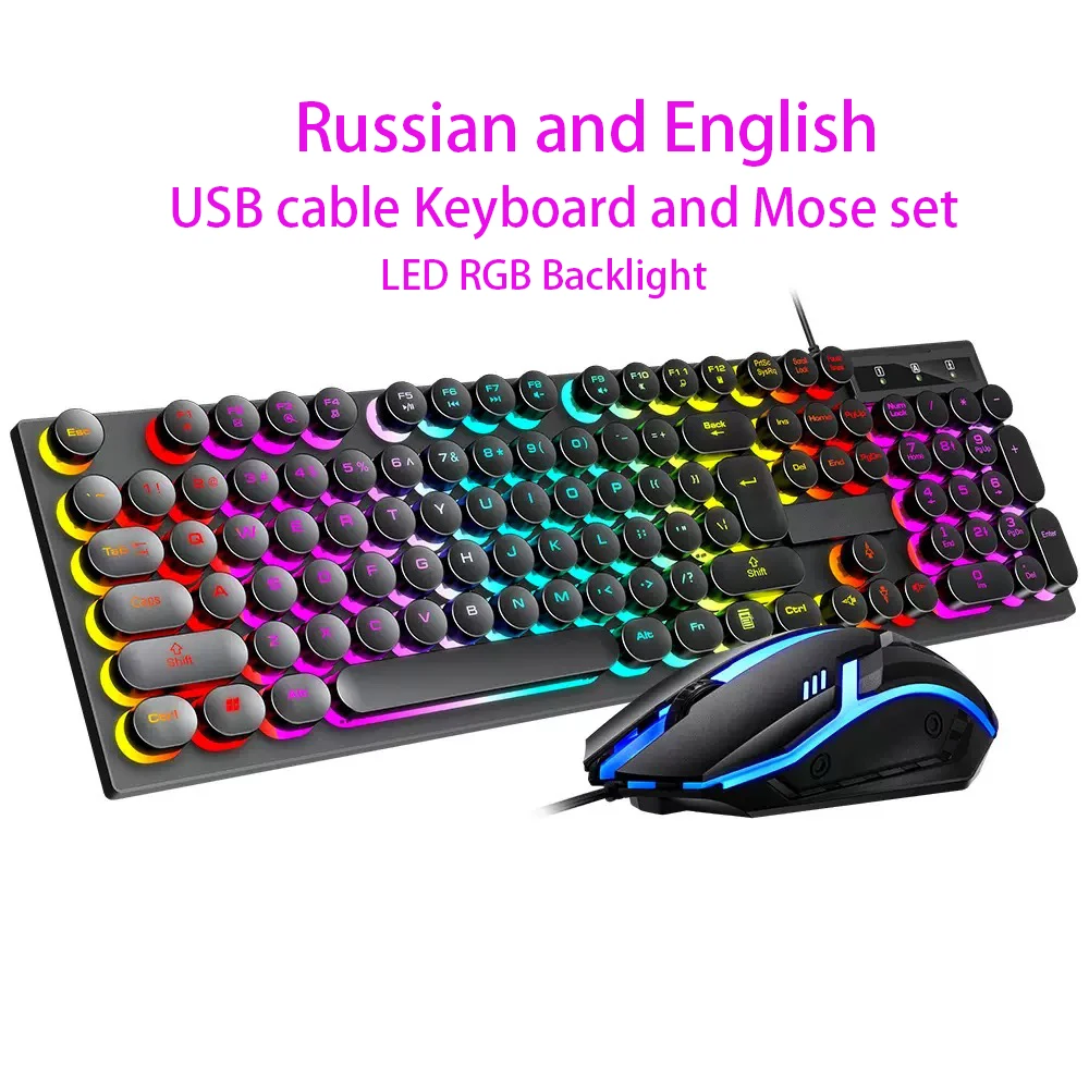 T7 Keyboard and Mouse Set Wired Gaming Computer Accessories RGB Backlight Russian USB Keyboard English Laptop Mouse Laser Roller
