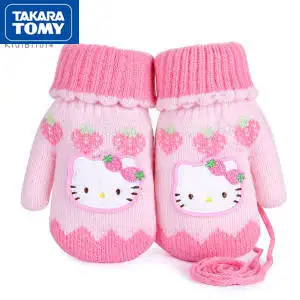 TAKARA TOMY модные Мультяшные перчатки Hello Kitty простые зимние теплые плюс бархатные Симпатичные детские шерстяные вязаные