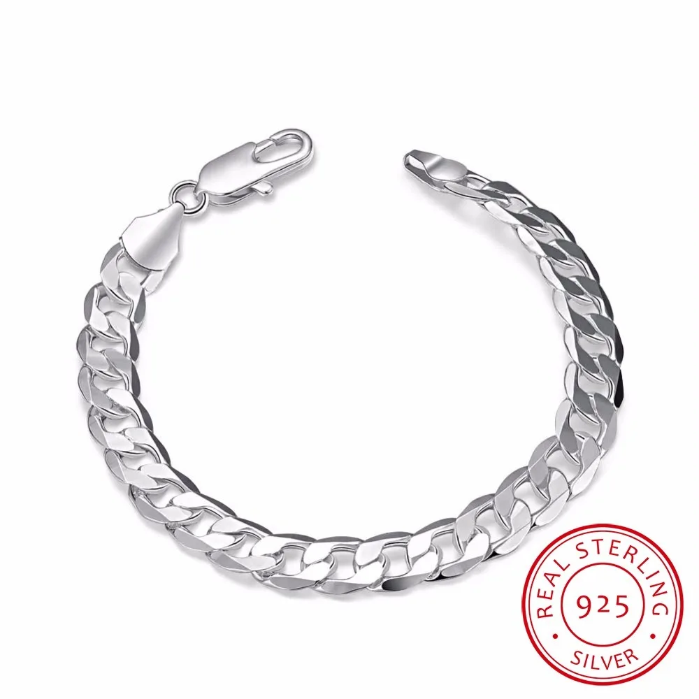 Lekani Men's Fine Jewelry 8 Inch 20cm Bracelet 925 Sterling Silver Fashion Charm 8mm Sideways Flat Chain Bracelets Bangle