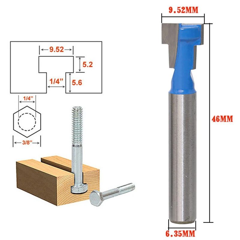 TAL 1/4" Shank T-Slot Cutter Router Bit Steel Handle Slotting Milling Cutter Woodworking Mill for Power Tools