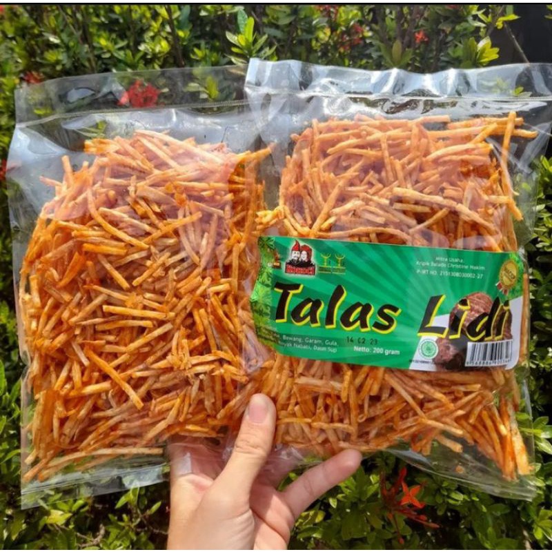 Keripik talas yang di potong berbentuk lidi dengan balutan bumbu balado, pedas manis dengan texture sedikit lengket Super nikmat dan bikin nagih.