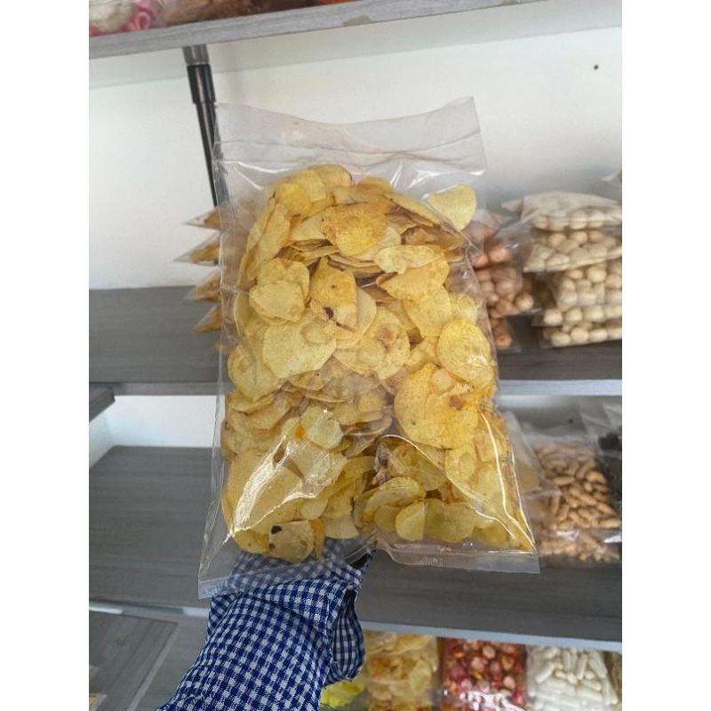 Talas yang di diiris tipis menjadikan keripik yang gurih dan terasa rasa talas nya cocok untuk teman santai