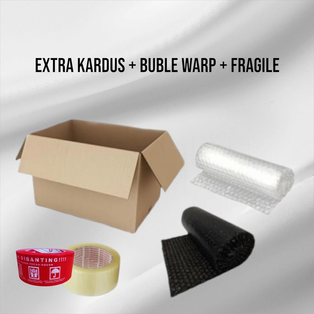 BUBBLE + KARDUS + FRAGILE PACKING TAMBAHAN UNTUK PENGIRIMAN Kami sarankan anda menggunakan tambahan packing bubble wrap agar pengiriman anda lebih aman dari bantingan Harga 3.000 untuk 2 lapis atau 2x bubble wrap pada barang kecil. sedangkan untuk barang besar dan quantity banyak. kami hanya memberikan 1 lapis atau 1x bubble wrap, anda bisa membeli 2x untuk barang besar dan quantity banyak agar lebih aman. Jika ingin sangat aman. anda bisa membeli bubble wrap 4x. kami pastikan barang anda sangat aman.