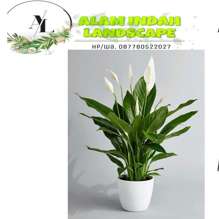 TANAMAN PEACE LILY RIMBUN + POT PUTIH