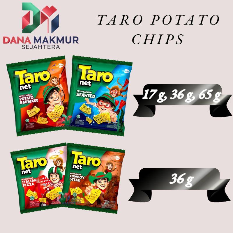 Taro Net Snack adalah makanan ringan berbentuk jaring yang terbuat dari irisan kentang alami. Camilan ini memiliki tekstur renyah dan bumbu yang menempel dengan baik. Taro Net Snack memiliki beberapa keunggulan, di antaranya: Tidak bikin haus, Tidak lengket di tangan, Terjamin kualitasnya.