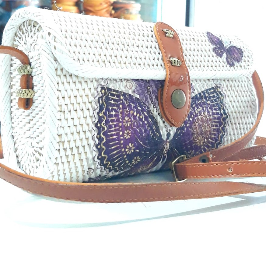 TAS ROTAN AMPLOP DECO MOTIF KUPU KUPU UNGU BEST - BY AL SHOP