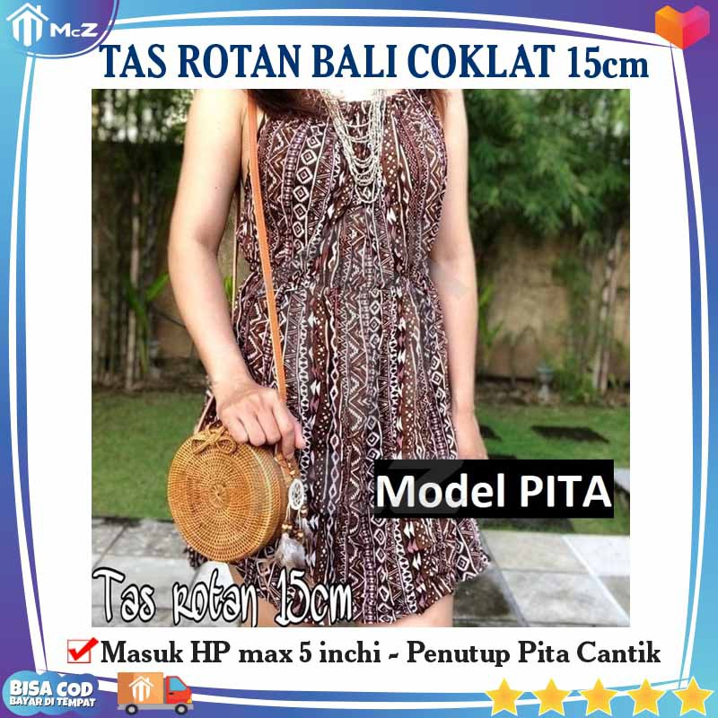 TAS ROTAN BALI COKLAT PITA 15cm - Tas Rotan Bulat Murah Polos PITA - Round Rattan Bag - bisa COD