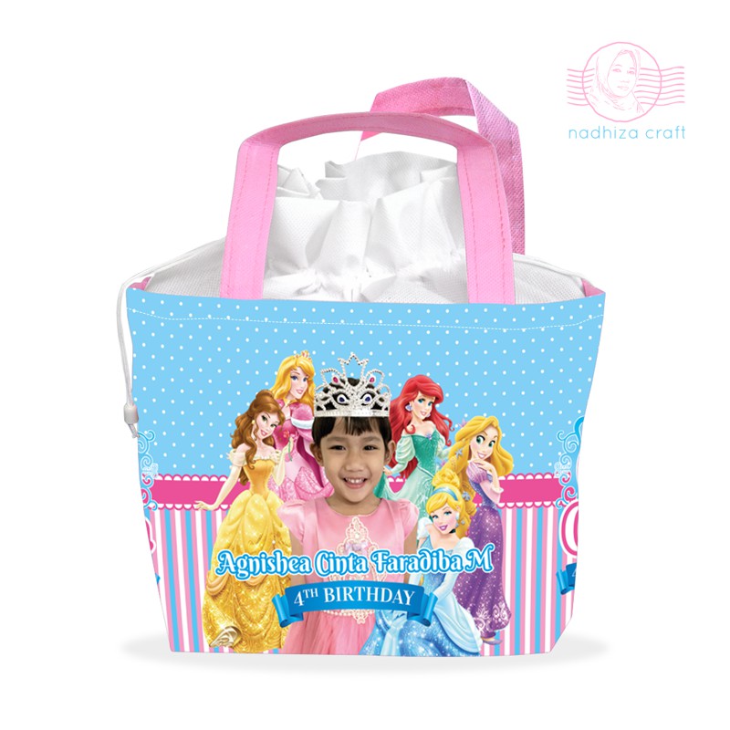 * Tas ultah dengan model serut tali bahan spunbound dengan kombinasi banner printing berkualitas