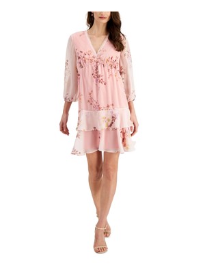 TAYLOR Женское розовое платье-трапеция выше колена с застежкой на подкладке и рукавом 3/4, Розовый