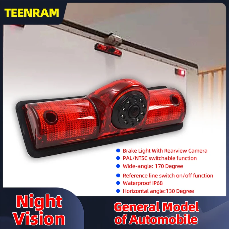TEENRAM Waterproof Reference Line Car Universal Truck Van Brake Light Rear View CVBS Camera Hd Night Vision Camera