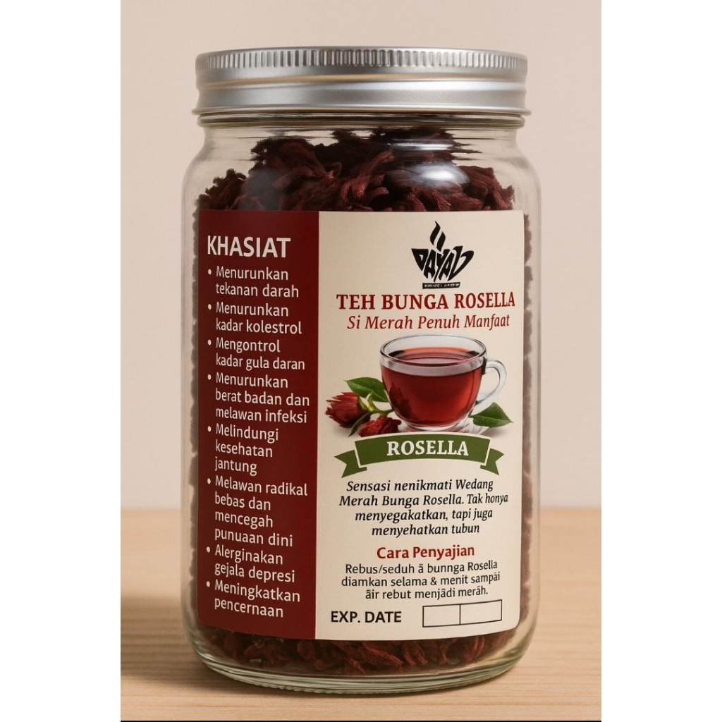 Nikmati sensasi segarnya Teh Bunga Rosella kering dengan rasa asam yang menyegarkan dan kaya manfaat kesehatan! Bunga rosella dikenal sebagai superfood herbal alami yang membantu menjaga daya tahan tubuh dan meningkatkan kualitas hidup.