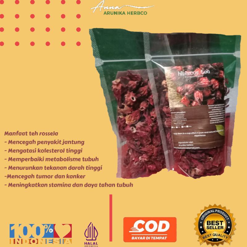 Arunika herbco - Teh Bunga Rosella 100% alami tanpa tambahan pengawet / perasa / pewarna / bahan kimia apapun.
