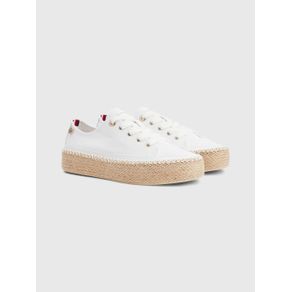 | summary: | Estos clásicos tenis presentan un diseño inspirado en el de una alpargata y se distinguen por los tradicionales detalles de cuerda que cubren la plataforma de goma vulcanizada. Características • Exterior en mezcla de poliéster reciclado • Interior de algodón • Plantilla de poliuretano reciclado y poliuretano • Suela de caucho y goma vulcanizada • Detalle de cuerda en la entresuela • Insignia con el monograma TH en el lateral • Detalles distintivos de Tommy Hilfiger Talla y corte • Diseño de corte bajo • Con cordones • Altura de la suela de 3 cm Composición y cuidados • 69 % poliéster reciclado, 31 % poliuretano |