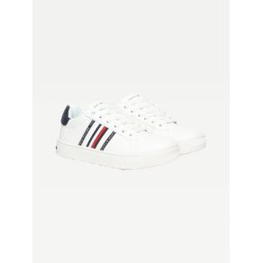TENIS TOMMY HILFIGER CON LOGO LÍNEAS LATERALES DE NIÑOS Talla: 19.5