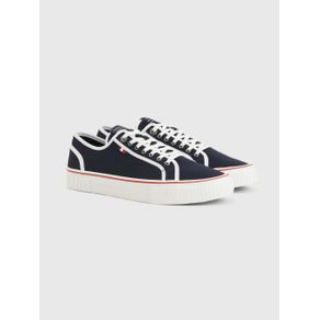 | summary: | Estos tenis de lona presentan acabados a contraste y lucen un logo de Tommy Hilfiger en tejido trenzado en el lateral. Características • Exterior en mezcla de poliéster reciclado • Interior de poliéster reciclado • Plantilla de poliuretano reciclado y poliuretano • Suela de caucho y de goma vulcanizada • Ribetes a contraste • Detalles distintivos de Tommy Hilfiger • Logo de Tommy Hilfiger en el lateral Talla y corte • Diseño de corte bajo • Con cordones Composición y cuidados • 67 % poliéster, 33 % algodón |