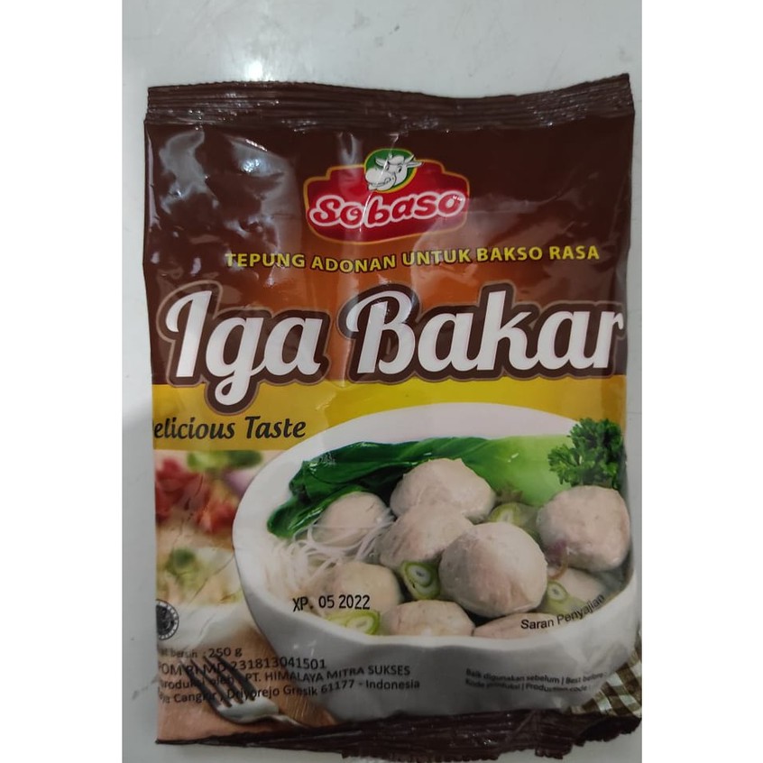 Tepung adonan bakso rasa iga bakar merupakan tepung campuran yang digunakan untuk membuat rasa bakso seperti iga bakar, yang tentunya rasa nikmat dan lezat. Tepung sobaso terbuat dari bahan pilihan, memiliki rasa yang lezat, berkualitas, harga terjangkau, serta sudah berlabel HALAL. Berat 250gr