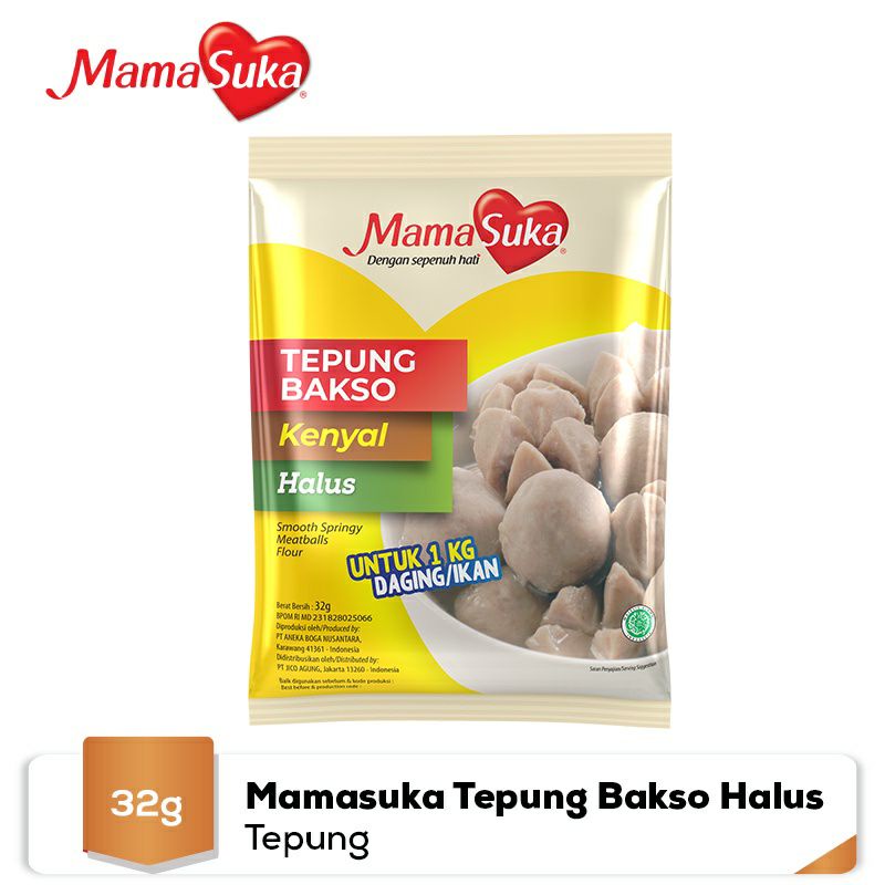 Tepung Bakso Mamasuka merupakan tepung yang dipadu dengan bahan dan bumbu pillihan yang berkualitas, sehingga menghasilkan tepung bakso yang berfungsi sebagai bahan tambahan membuat aneka Bakso, Siomay dan Otak-otak menjadi lebih halus, kenyal.