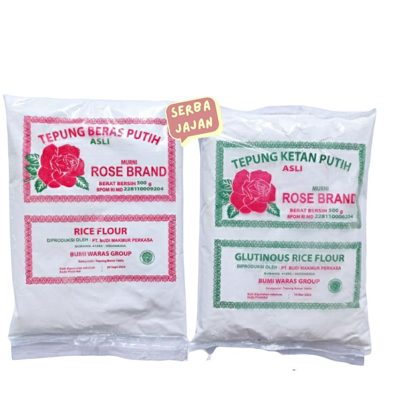 TEPUNG BERAS PUTIH & TEPUNG BERAS KETAN ROSE BRAND Netto 500gr
