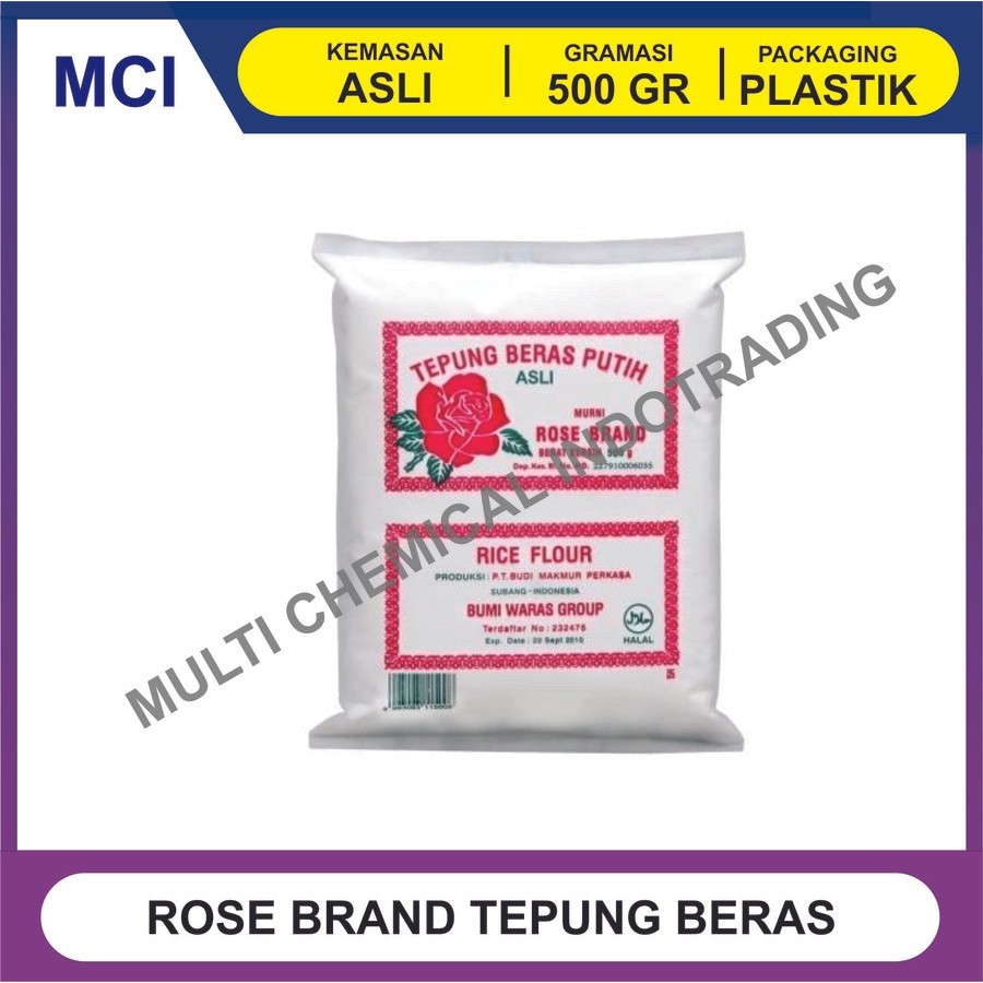 Tepung Beras Putih Rose Brand adalah tepung yang dibuat dari beras terbaik diproses secara higenis. Sangat cocok untuk membuat semua jenis kue kue tradisional atau hidangan lainnya. Tepung beras tidak sama dengan pati beras yang dibuat dengan merendam beras dalam larutan alkali. Tepung beras dapat dijadikan pengganti dari tepung gandum bagi penderita intoleransi gluten karena tepung beras tidak mengandung gluten.