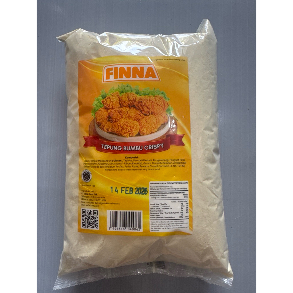 tepung bumbu finna serbaguna, exp panjang ya.. best seller utk menggoreng tempe, tahu, terong dll mak nyus sekali