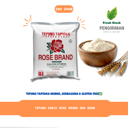 Tepung kanji (tapioka) dari Rose Brand diperoleh melalui ekstraksi pati unggul dari umbi singkong pilihan. Produk ini memiliki tekstur sangat halus dan bening, ideal untuk berbagai olahan tradisional dan modern, serta bebas gluten.