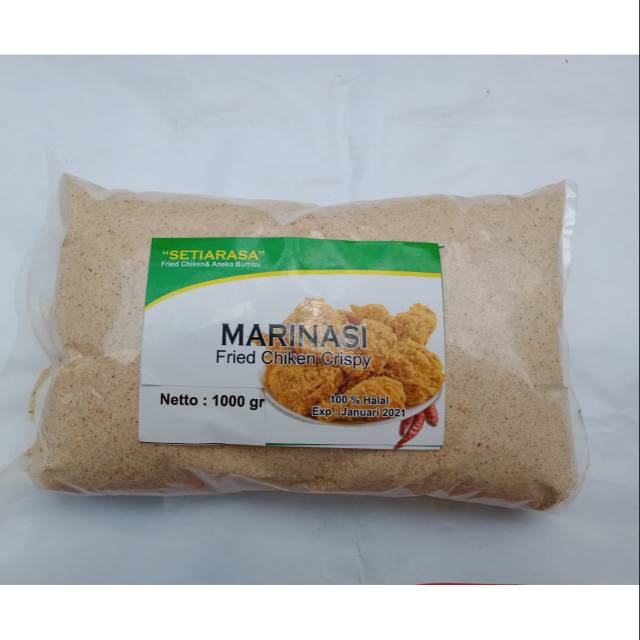 Tepung marinasi setiarasa dibuat dari rempah2 alami yg di campur menjadi satu dengan hasil berkualitas terjamin,dipakai untuk membui ayam agar beraroma sedap,menghilangkan bau anyir,rasa lebih gurih & lezat