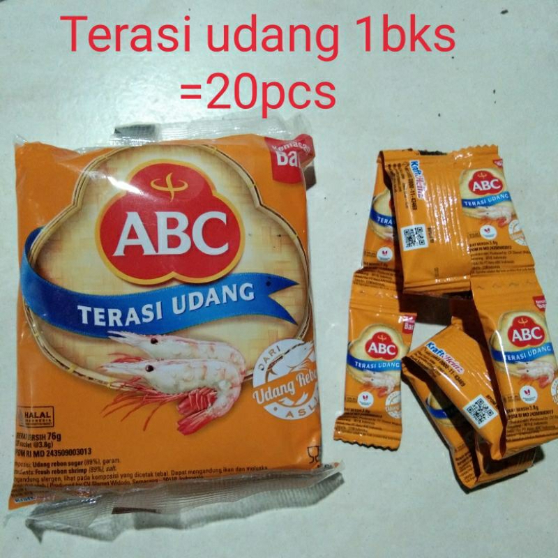 Terasi udang ABC terbuat dari udang rebon asli yg d kemas sesuai takaran sekali sambelan yg tak kurang/lebih dlm sekali makan tuk keluarga tercinta