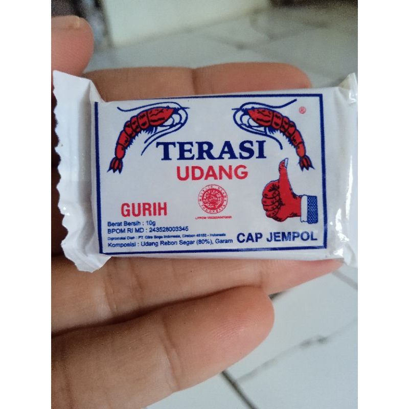 Terasi Asli Udang rebon cap Jempol khas Cirebon terbuat dari rebon udang pilihan yang diolah secara di gunakan sebagai tambahan dalam bumbu memasak. Sangat Cocok bagi pecinta sambal terasi.